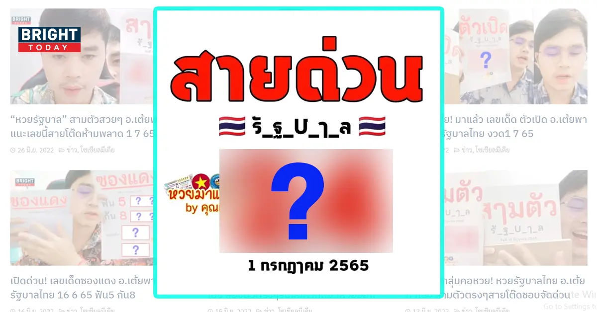“หวยรัฐบาล” เปิดเลขเด็ด สายด่วย โค้งสุดท้าย อ.เต้ยพาเฮง แนวทางสลากกินแบ่งรัฐบาล งวดวันที่ 1 กรกฎาคม 2565