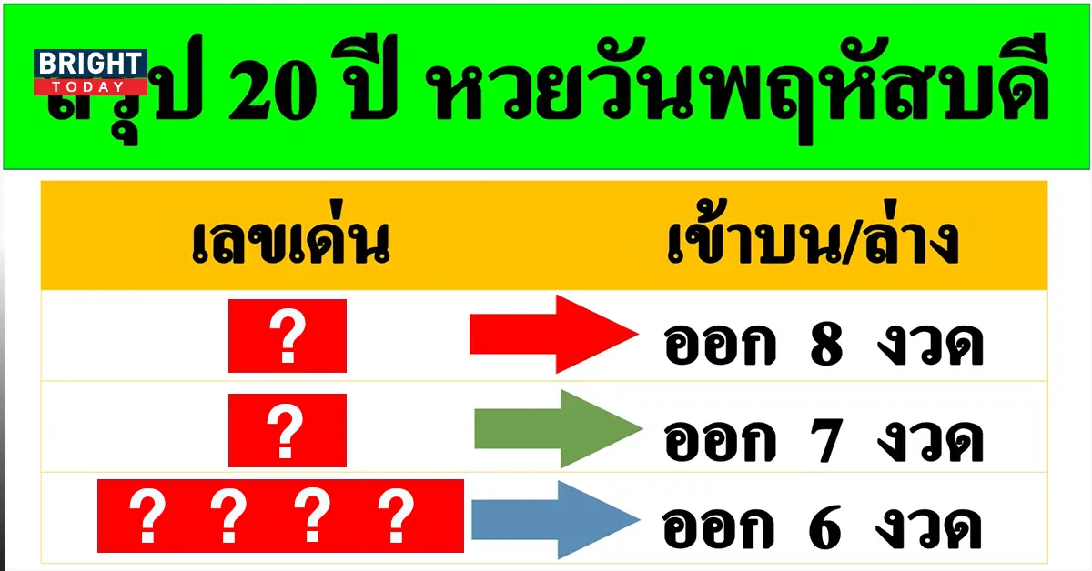 วันนี้ BRIGHT TODAY ได้ข้อมูลที่น่าสนใจจากช่องยูทูป รวมสํานักหวยดัง นั้นเป็นข้อมูลเกี่ยวกับ หวยวันพฤหัส สถิติ 20 ปีย้อนหลัง หวังว่าจะสามารถเป็นแนวทางเลือกซื้อสลากกินแบ่งรัฐบาล งวดวันที่ 16 มิถุนายน 2565 ซึ่งรวบรวมมาให้ทั้งเลขเด็ดที่ออกบ่อยสุด ถึง 8 ครั้ง และเลขที่ไม่เคยออกมาก่อนเลย ประกอบการตัดสินใจซื้อเลขเด็ดในงวดนี้