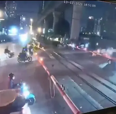 กล้องวงจรปิดเผยคลิปภาพอุบัติเหตุ รถไฟชนคน บริเวณถนนเพชรอุทัย ช่วง ทางข้ามทางรถไฟ สาย กทม.- ฉะเชิงเทรา ใกล้เคียงวัดอุทัยธาราม