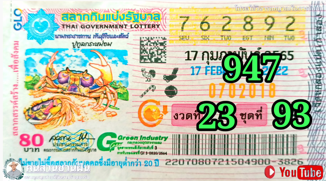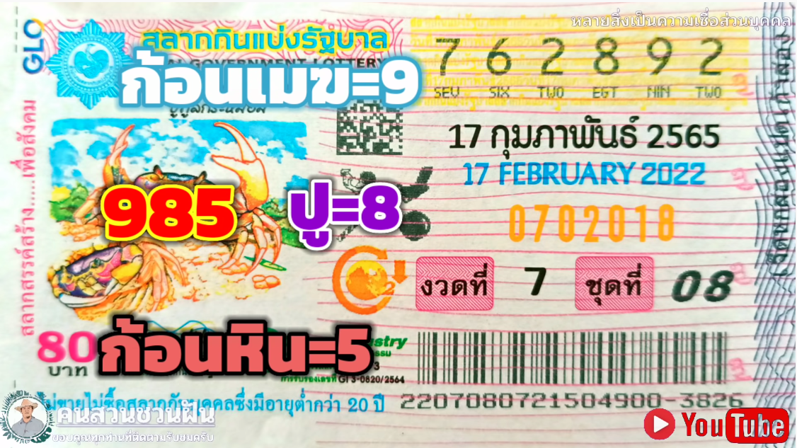 อีกหนึ่งเจ้าที่ทำผลงานงวดที่ผ่านมาได้ดี 30ตรงๆ งวดนี้ตามต่อ!! เลขเด็ด แปลปกสลาก สลากกินแบ่งรัฐบาลไทย งวด 17 กุมภาพันธ์ 2565
