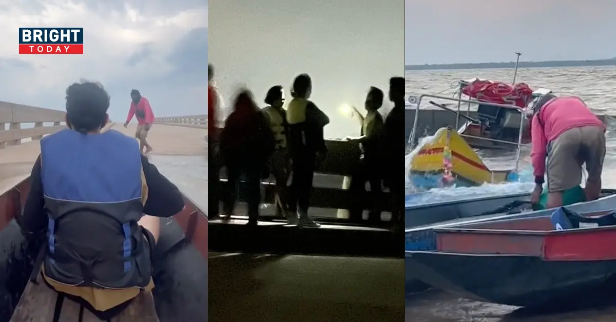 นักท่องเที่ยว ล่องเรือเที่ยว เขื่อน ชิลๆตั้งใจไปชมความสวยงามของ สะพานผุด แต่ดันเจอฝนฟ้ากระหน่ำ เรือจมน้ำ จะกลับยังไงละทีนี้