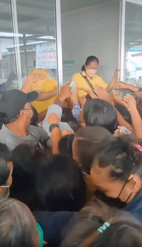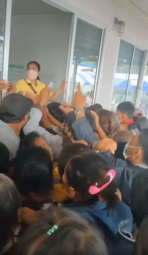 ชาวบ้านแห่ไปโรงพยาบาลแต่เช้ามืดเพื่อรอเอาคิว ฉีดซิโนฟาร์ม เมื่อถึงเวลาแจกบัตรแถวแตกชุลมุน ไม่มีการจัดระเบียบ รพ.ยันวุ่นวายแค่แปปเดียว