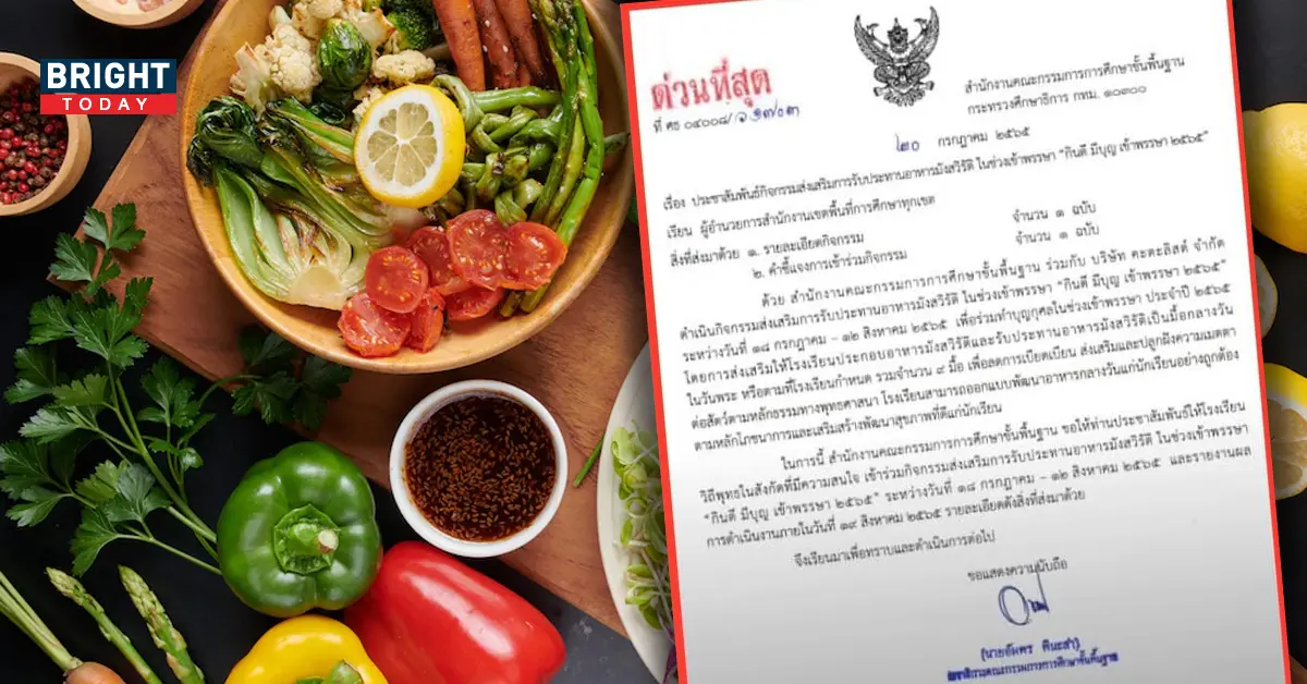แค่เชิญชวน..ไม่ได้บังคับ “สพฐ.” แจงรร.ในสังกัด ทำอาหารมังสวิรัติ 9 มื้อ ในช่วงเข้าพรรษา การรณรงค์ดังกว่าเป็นกิจกรรมที่ทำทุกปี