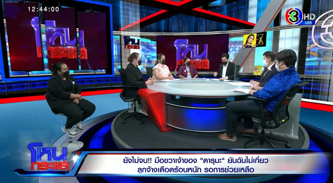 โดยในวันที่ (21 มิ.ย. 65) เหล่าบรรดามือขวาเจ้าของ ดารุมะ ได้เดินทางไปร่วมรายการโหนกระแสเพื่อพูดคุยถึงเรื่องราวที่เกิดขึ้น ซึ่งในโซเชียลต่างจ่องจับผิดคาดเดาว่า มือขวาเจ้าของ ดารุมะ นั้นอาจมีส่วนส่วนรู้เห็นถึงการโกง Voucher ที่มีผู้เสียหายเป็นจำนวนมากอยู่ในตอนนี้
