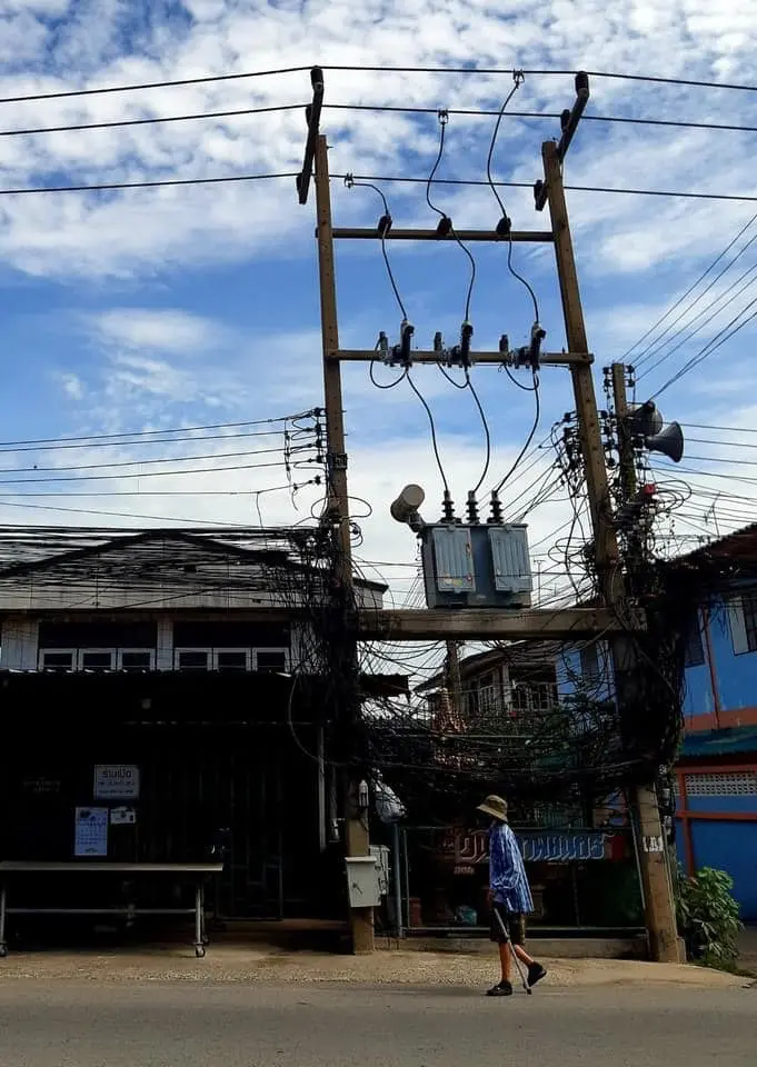 คิดดูเถิด คนที่นอนในบ้านหลังที่กระชั้นชิดติดกับเสาไฟจะหวาดกลัวอันตรายจากพี่หม้อแปลงและเหล่าบรรดาน้องๆ สายที่คล้องอยู่ด้านล่างขนาดไหน?