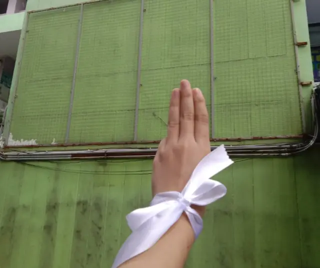 สำหรับภาพดังกล่าวเป็นภาพที่โรงเรียนวัดนวลนรดิศ เขตภาษีเจริญ กรุงเทพฯ มีนักเรียนทำกิจกรรม ชูสามนิ้ว และผูกโบว์ขาว อีกทั้งยังมีการปลดป้าย พล.อ. ประยุทธ์ จันทร์โอชา นายกรัฐมนตรีและรัฐมนตรีว่าการกระทรวงกลาโหม ศิษย์เก่าจบชั้นมัธยมศึกษาปีที่ 3 ออกไปในช่วงนี้