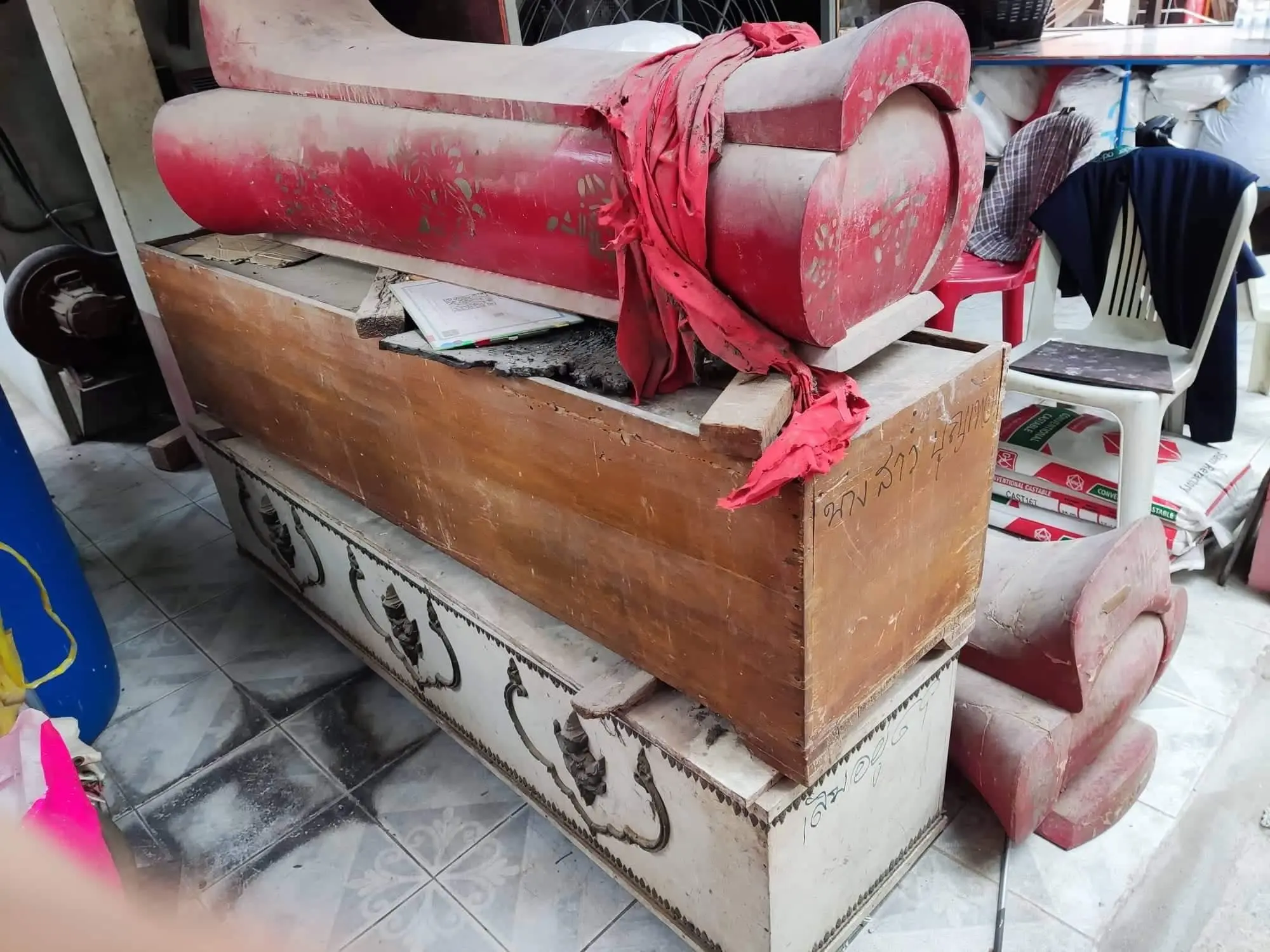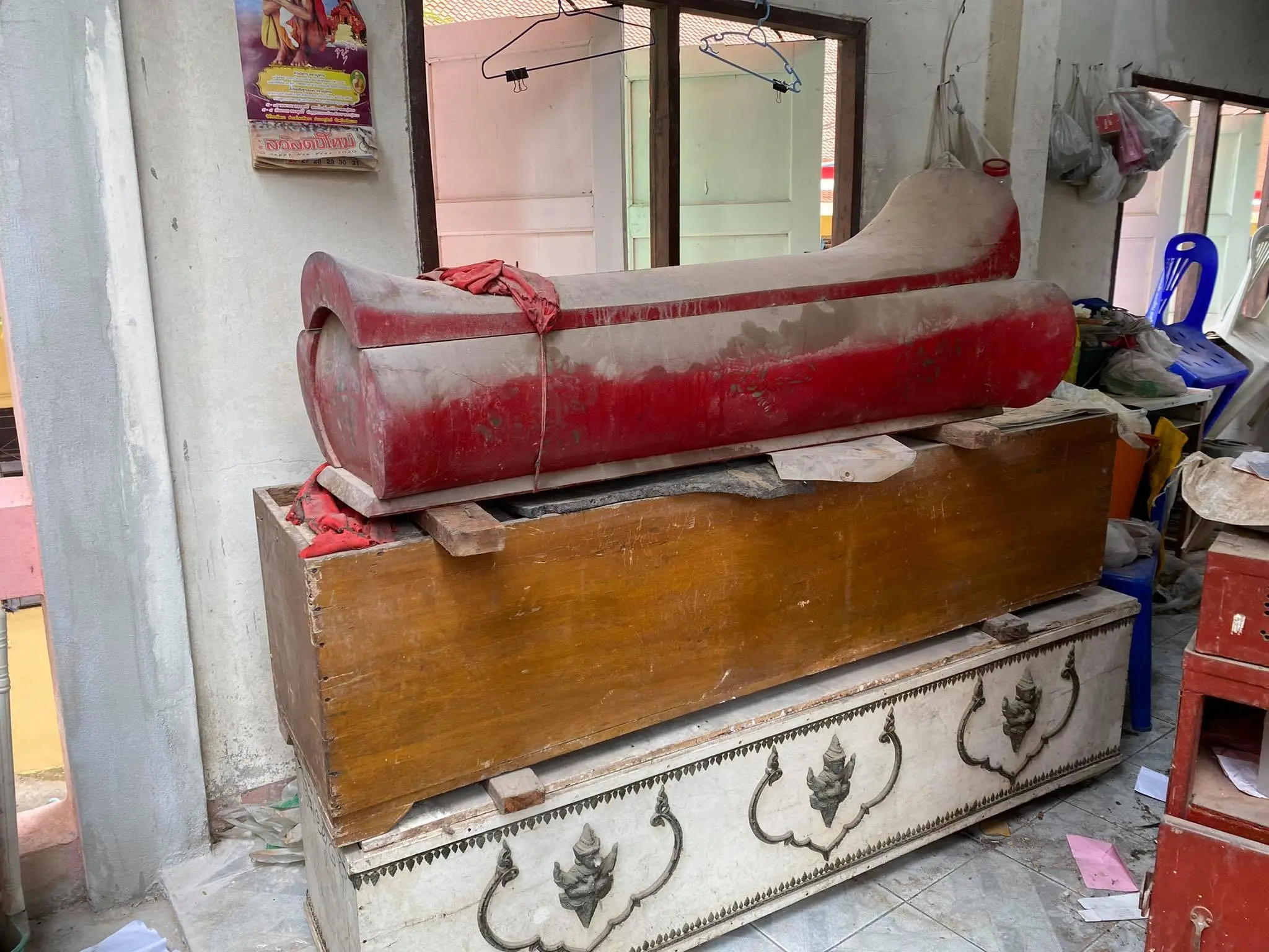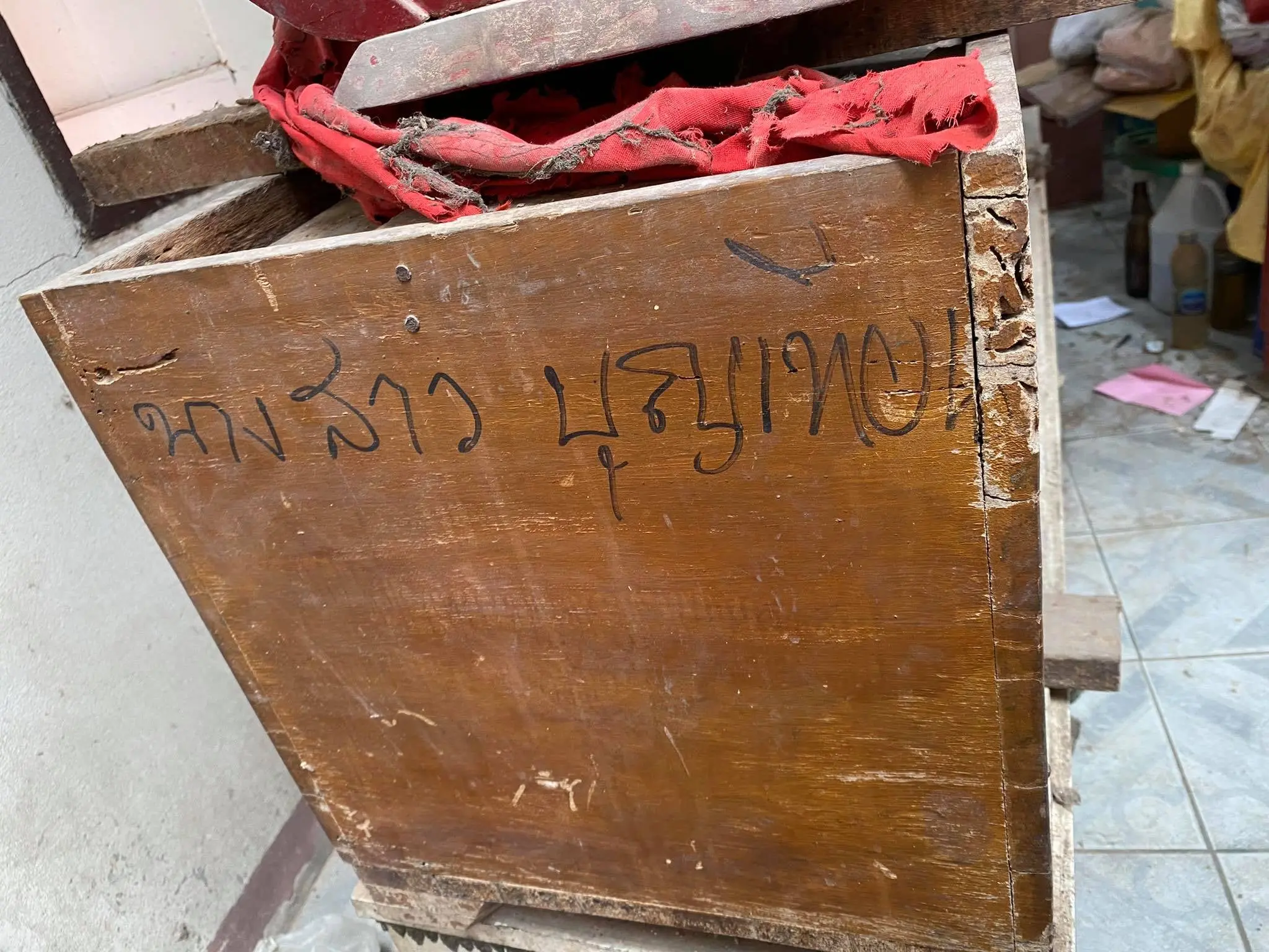 และ โลงเปล่าทรงจีนสีแดง ไม่ทราบนาม สกุลผู้ฝาก