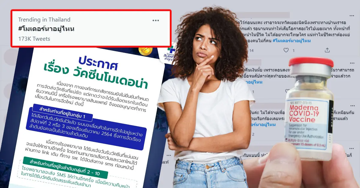 และแล้วก็เจอกระแสตีกลับอีกครั้ง ร้อนระอุไปทั้งโซเซียล ชาวเน็ตติด #โมเดอร์นาอยู่ไหน ทะยานขึ้นเทรนด์ทวิตเตอร์ หลังประกาศเลื่อนคิวฉีดวัคซีน