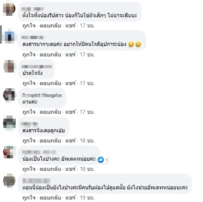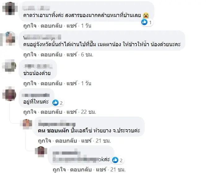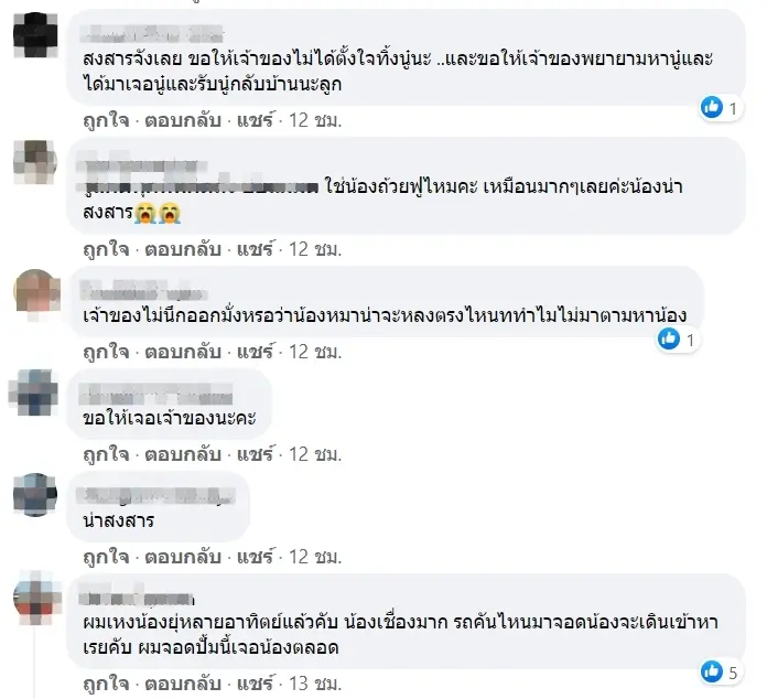 หลังจากที่เรื่องราวนี้ได้ถูกเผยแพร่ก็มีผู้เข้ามาแชร์ต่อกว่า 1 พันครั้ง บางรายก็ร่วมแสดงความคิดเห็นว่าลักษณะแบบน้ีต้องเป็ฯสุนัขที่ถูกทิ้งอน่างแน่นอนอีกทั้งบางรายก็อยากให้น้องได้บ้านชั่วคราวก่อนเพื่อความปลอดภัย และยังมีอีกบางส่วนที่บอกว่าไม่น่าจะเป็นสุนัขที่ถูกทิ้งเนื่องจากผู้โพสต์ระบุว่า “ตอนแรกสีขาวจั๊วเหมือนเจ้าของจะดูแลอย่างดี ตอนนี้สกปรกมอมแมม”