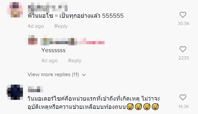 งานนี้ทำเอาชาวเน็ตแห่เข้าคอมเมนต์ถึงเหตุการณ์ที่เกิดขึ้นว่า พี่วินมอไซ = เป็นทุกอย่างแล้ว, วินมอเตอร์ไซค์คือหน่วยแรกที่เข้าถึงที่เกิดเหตุ ไม่ว่าจะอุบัติเหตุหรือความช่วยเหลือบนท้องถนน, พี่วินบ้านเรานี่ เหมือนดับเพลิงบ้านเค้าอะ เป็นทุกอย่างจริงๆ, วินมอไซค์ หน่วยงานแรก ที่พร้อมช่วยเหลือคุณเสมอ