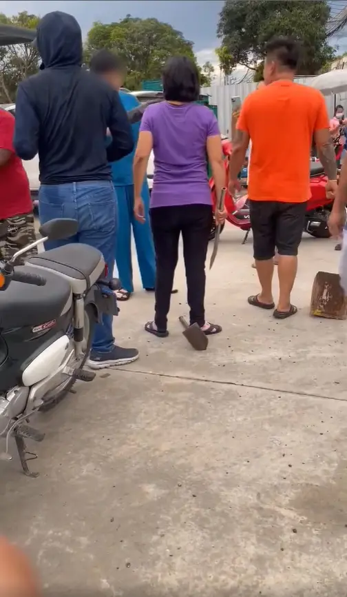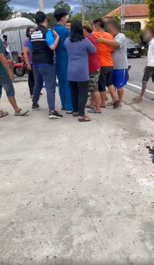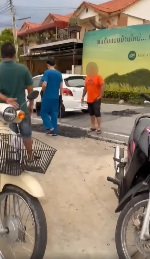 แต่ในกรณีนี้ เพจเฟซบุ๊ก ข่าวสารชลบุรี-ระยอง ได้มีการโพสต์คลิปเรื่องราวเหตุการณ์ทะเลาะวิวาทของคนที่อาศัยอยู่ในชุมชน กับคนที่อาศัยอยู่ในหมูบ้านที่สร้างใหม่ จากภาพจะเห็นได้ว่า มีชายรายหนึ่งใส่ชุดสีน้ำเงินกำลังยืนรือ ลูกระนาด ที่อยู่บนถนนทิ้ง โดยมีชายเสื้อส้มได้เข้ามาพยายามห้าม