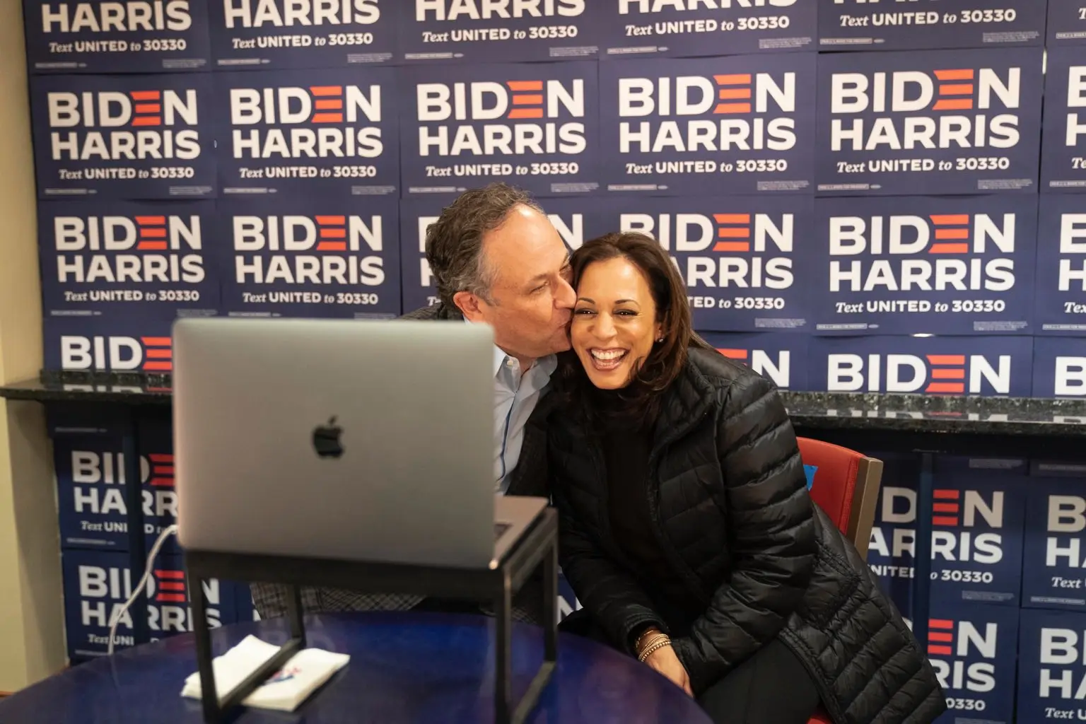 ด้านชีวิตส่วนตัว แฮร์ริสได้สมรสมกับนายดักลาส เอ็มฮอฟฟ์ ทนายความ เมื่อปี 2014 โดยทั้งคู่ได้เจอกันครั้งแรกในไบลด์เดตเมื่อปี 2013 ก่อนที่จะตัดสินใจแต่งงานในปีต่อมา ก่อนหน้านี้นายเอ็มฮอฟฟ์เคยสมรสมาแล้วเมื่อปี 1992 และมีบุตรกับภรรยาเก่า 2 คน ก่อนที่จะหย่าร้างในเวลาต่อมา ตลอดช่วงการหาเสียงที่ผ่านมา นายเอ็มฮอฟฟ์ถือเป็นผู้สนับสนุนคนสำคัญของแฮร์ริส โดยการที่แฮร์ริสชนะเลือกตั้งได้เป็นว่าที่รองประธานาธิบดีสหรัฐ ก็จะทำให้เขาเตรียมสร้างประวัติศาสตร์ เป็นสุภาพบุรุษหมายเลข 2 คนแรกของสหรัฐฯ เช่นเดียวกัน