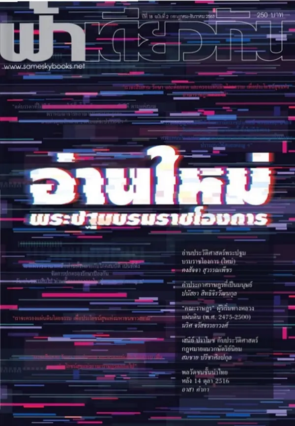วารสารจากสำนักพิมพ์ฟ้าเดียวกันที่รวบรวมบทความการเมืองเชิงวิพากษ์ไว้อย่างอัดแน่น อาทิ อ่านประวัติศาสตร์พระปฐมบรมราชโองการ (ใหม่) : คันฉ่องสะท้อนนัยยะทางกฎหมายและการเมืองของกษัตริย์และสยามสมัยใหม่ โดย คงสัจจา สุวรรณเพ็ชร, สูติบัตรรัฐไทย โดย ปวงชน อุนจะนำ, “คณะราษฎร” ผู้ริเริ่มทางหลวงแผ่นดิน (พ.ศ. 2475-2500) โดย นริศ จรัสจรรยาวงศ์, เสนีย์ ปราโมช กับประวัติศาสตร์กฎหมายแนวกษัตริย์นิยม โดย สมชาย ปรีชาศิลปกุล, พลวัตชนชั้นนำไทยหลัง 14 ตุลา 2516 : จากการก่อตัวของพันธมิตรระหว่างพระมหากษัตริย์ กลุ่มอนุรักษนิยม และผู้นำทหาร ถึงพิมพ์เขียวการเมืองไทยที่ล้มเหลว โดย อาสา คำภา และ คำประกาศราษฎรที่เป็นมนุษย์ มิใช่ฝุ่นละอองธุลีพระบาท : จดหมายถึง ร. 10 โดย รุ้ง ปนัสยา สิทธิจิรวัฒนกุล