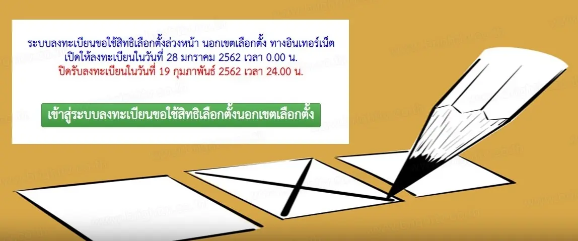 หลังคณะกรรมการการเลือกตั้ง หรือ กกต. เปิดให้ ลงทะเบียนเลือกตั้งล่วงหน้า ระหว่างวันที่ 28 ม.ค. – 19 ก.พ. 2562 สำหรับผู้ที่ไม่สะดวกไปใช้สิทธิในวันเลือกตั้งจริง 24 มีนาคม ให้ไปใช้สิทธิก่อนในวันที่ 17 มีนาคม ซึ่งกระทรวงมหาดไทยสรุปยอดผู้ลงทะเบียนทั้งนอกเขต และนอกราชอาณาจักรทั้งสิ้นกว่า 3.8 ล้านคน